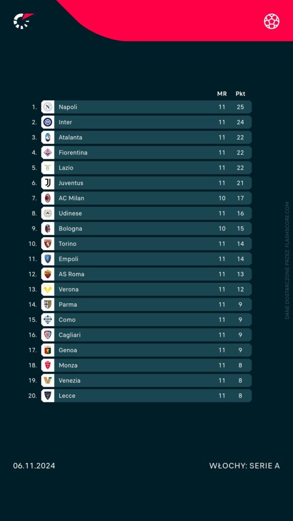 Torino nadal notuje zjazd w ligowej tabeli. Po porażce z mającą pewne problemy Romą, podopieczni Paolo Vanoliego przegrali u siebie z Fiorentiną (0:1). Statystyki również nie sprzyjają Bykom. Ostatni raz Granata pokonała Juventus na wyjeździe w 1995 roku. Gościom dzisiejszego meczu na pewno nie pomoże fakt nieobecności Duvana Zapaty. Kolumbijczyk który już od października jest kontuzjowany, nadal pozostaje najlepszym strzelcem zespołu ex equo z Adamsem (obaj po 3 trafienia). W kadrze meczowej zabraknie także kontuzjowanych Schuursa, Savvy i Ilkhana. Jakby problemów było mało, od początku sezonu kibice protestują przeciwko prezydentowi Urbanowi Cairo, domagając się sprzedaży klubu. Zgodnie z najnowszymi doniesienami mediów Cairo jest gotowy sprzedać Torino, a zainteresowany kupnem drużyny ma być Red Bull.