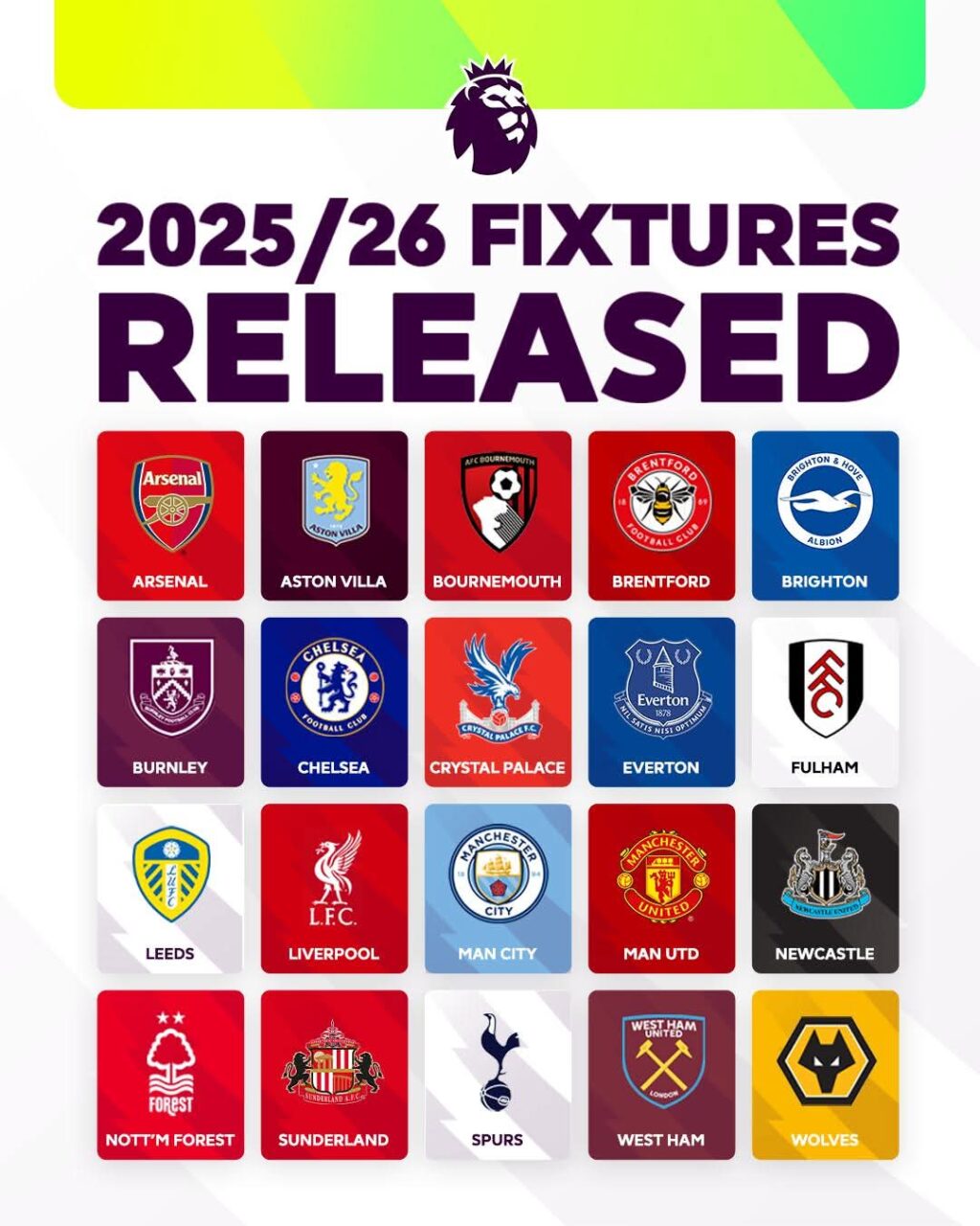 Sezon 25/26 w Premier League rozpocznie się 15 sierpnia (piątek) o godzinie 21:00 czasu Polskiego na stadionie zeszłorocznych mistrzów – Liverpool zmierzy się z Bournemouth. Następnie: