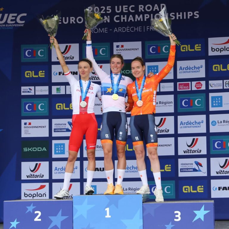 Demi Vollering wygrała wyścig ze startu wspólnego elity kobiet i zdobyła złoty medal Mistrzostw Europy 2025 w kolarstwie szosowym. Na...
